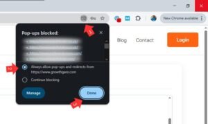 growthgare.surgigo.com.pk). - Confirm by Clicking “Done”: After selecting the option to allow pop-ups, click the “Done” button to save the settings.